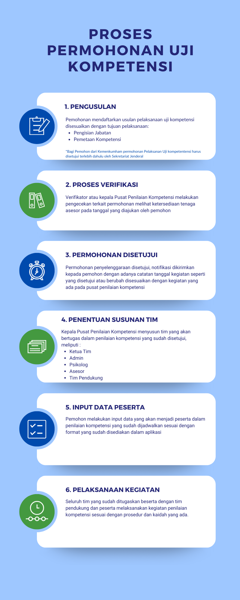Aplikasi ini menyediakan sarana untuk proses penilaian kompetensi Pegawai, dan digunakan untuk Efisiensi dan Efektifitas Pelaksanaan Penyelenggaraan Penilaian Kompetensi mulai dari Perencanaan, Persiapan, Pelaksanaan dan Pemantauan hingga Pelaporan, serta dashboard capaian berbasis web.